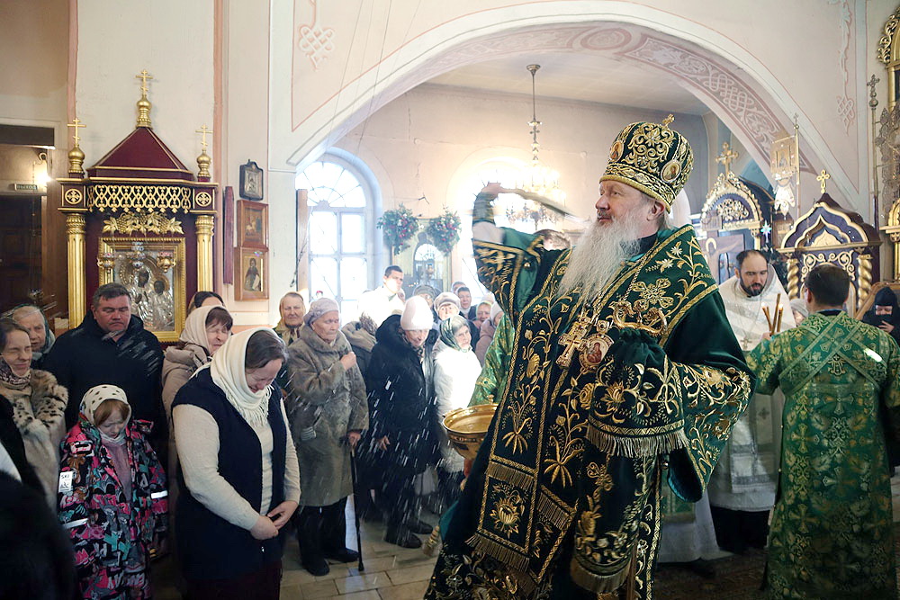 В завершение богослужения митрополит Марк совершил водосвятный молебен, окропил верующих святой водой, Владыкой было совершено славление преподобному Серафиму Саровскому перед его украшенным образом.